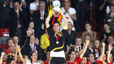 Depois do Oscar para Javier Barden, o Euro 2008... Parece que este é o Ano da España, e deve-o a homens (Homens) como já não há muitos por aí. Iker Casillas é um exemplo... bonito, fabuloso guarda-redes com contrato vitalício com o Real Madrid e não apenas abraça o Sua Majestade, o Rei, como beija Sua Majetade a Rainha... não é para qualquer um. Um capitão assim vale a pena!
